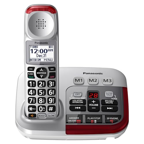 The features on the Panasonic KX-TGM420W Amplified Cordless Phone with Digital Answering Machine, 1 Handset, White offer an increase in amplification by up to 40 decibels. The price is in the upper range for amplified phones. By slowing the speed of speech on incoming calls, it can help the hearing impaired to understand the words while the caller does not notice it. The ability to block up to 250 numbers prevents telemarketers from taking advantage of the elderly. Instead of displaying an incoming phone number, this Panasonic model announces a known name or number. The unit can support up to six handsets for user accessibility. Other features include a speakerphone, nine speed dial numbers and a bright red LED that flashes when the base receives an incoming call.