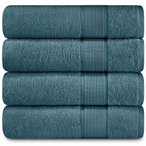 Those looking for a little more size and weight will enjoy the set of four Cotton Craft Ultra Soft Towels. These oversized, extra-large bath towels measure 30 by 54 inches, and they weigh 22 ounces. Each one is made of 100% pure ring spun cotton with a Rayon trim. This set is great for everyday use, and it is machine washable.
