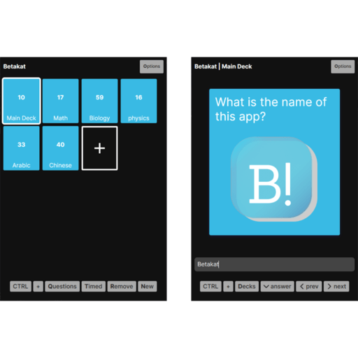 Study (flashcards) application, setup Decks fill it with Questions(cards). Used as two bases, (Front/Back) by Answer peaking, or (Question/Answer).