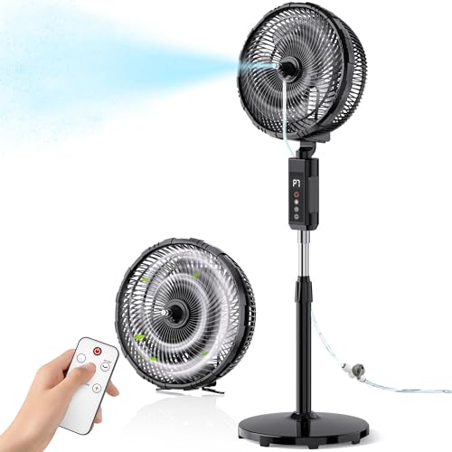 If you trust us and our users, feel free to check out the Shark FlexBreeze HydroGo Fan—Ultra-powerful portable fan with indoor + outdoor mist. Corded & cordless. Our statistics say that it is the most favorite Misting Fan from the list above.