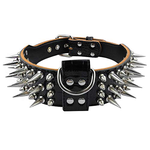 If you're looking into finding the best rated spiked dog collar, you should probable check out the Hoot PU Leather Adjustable Studded Collar. We looked at various sources of reviews and found this one to have the best mix between review count and average rating stars.