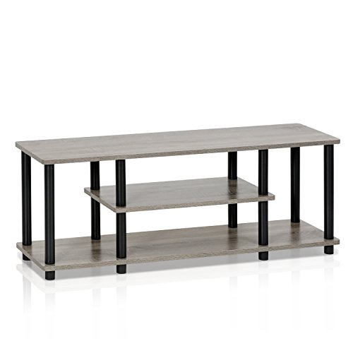 The Convenience Concepts Designs2Go 3-Tier Wide TV Stand is a sleek, modern styled black television stand. It is optimized to fit a forty-two inch LCD or plasma screen television. The stand has a one hundred pound weight capacity and includes two lower shelves for additional storage space. It costs about thirty-six dollars, although expert assembly help can be purchased for an additional one hundred and ten dollars.